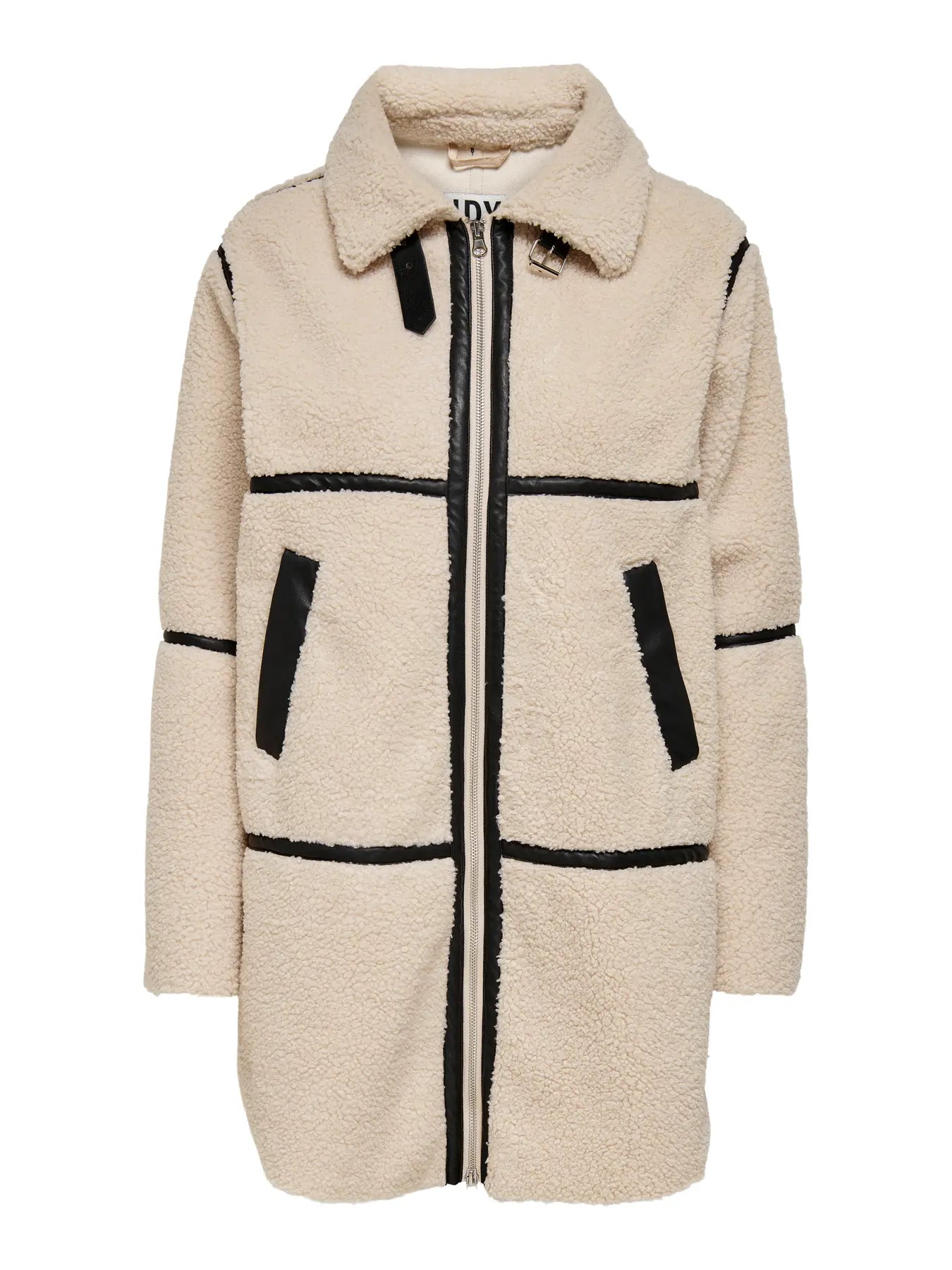 Supermysig teddyjacka med svarta detaljer i skinnimitation.