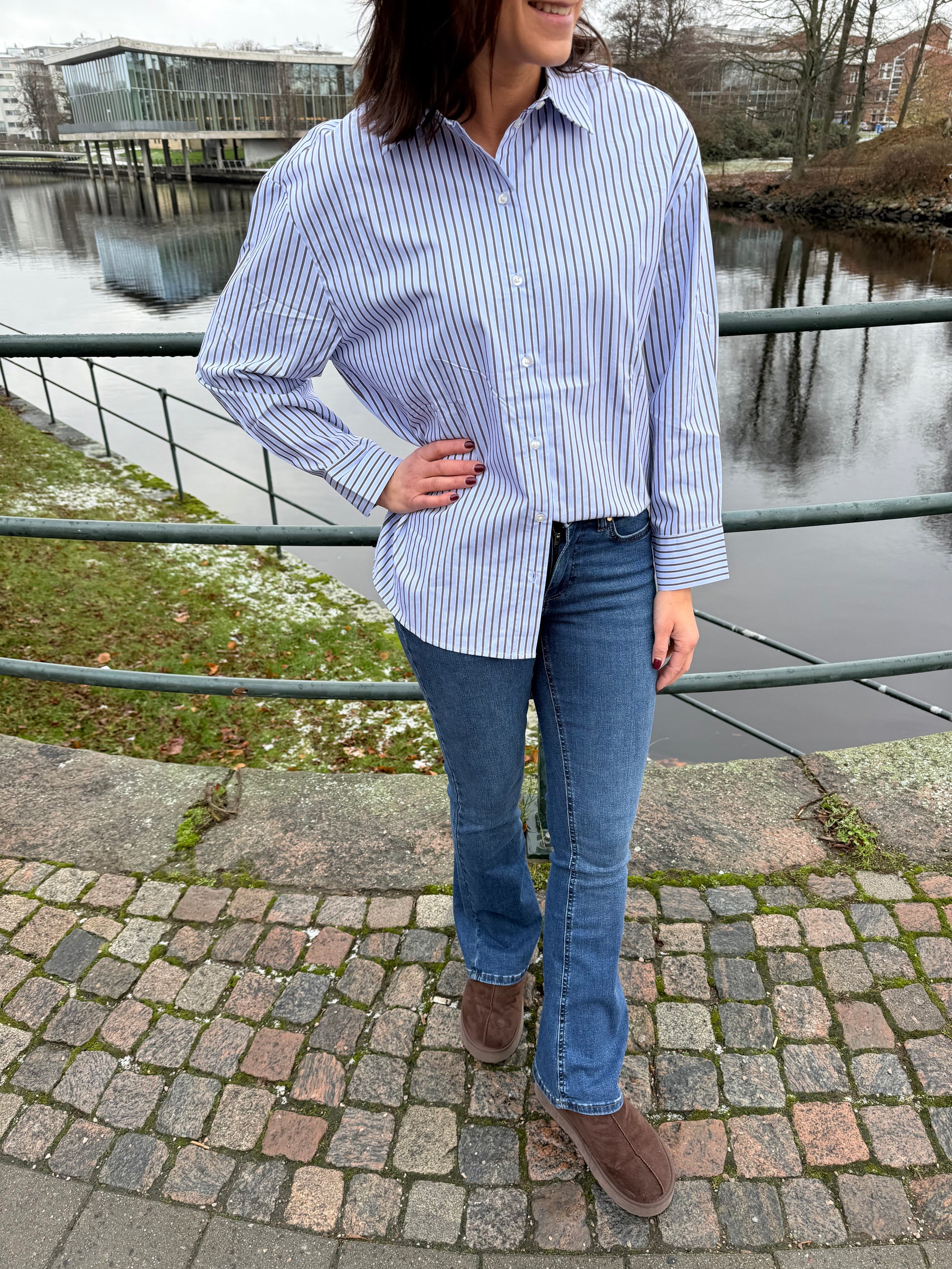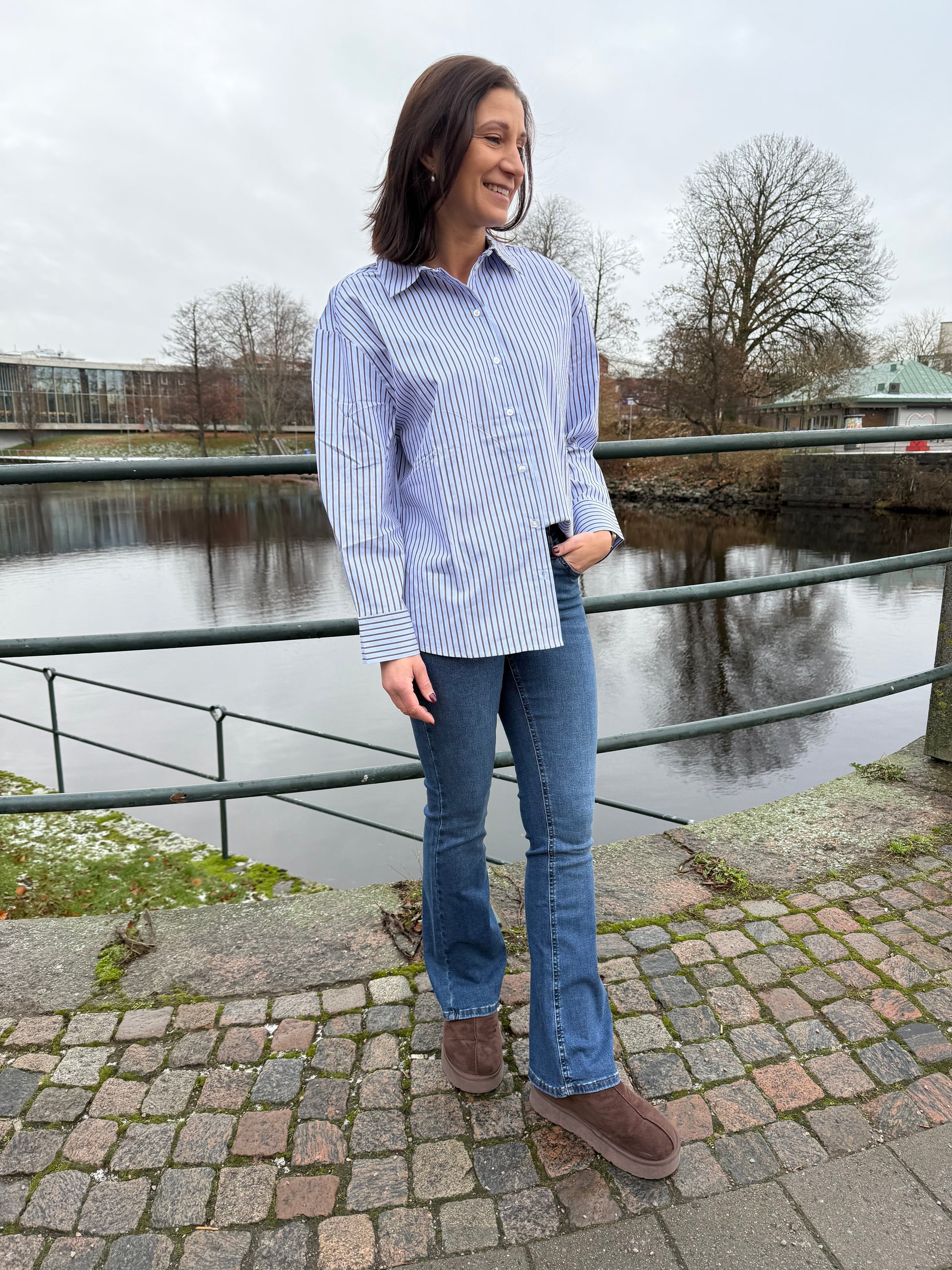 Ljusblå/brun randig skjorta i oversize modell.