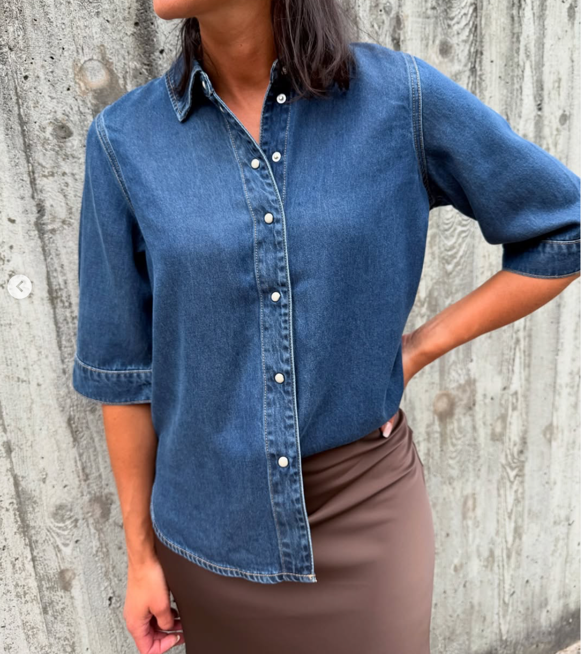 OBJFRAME 2/4 RE DENIM TOP DARK BLUE RINSE