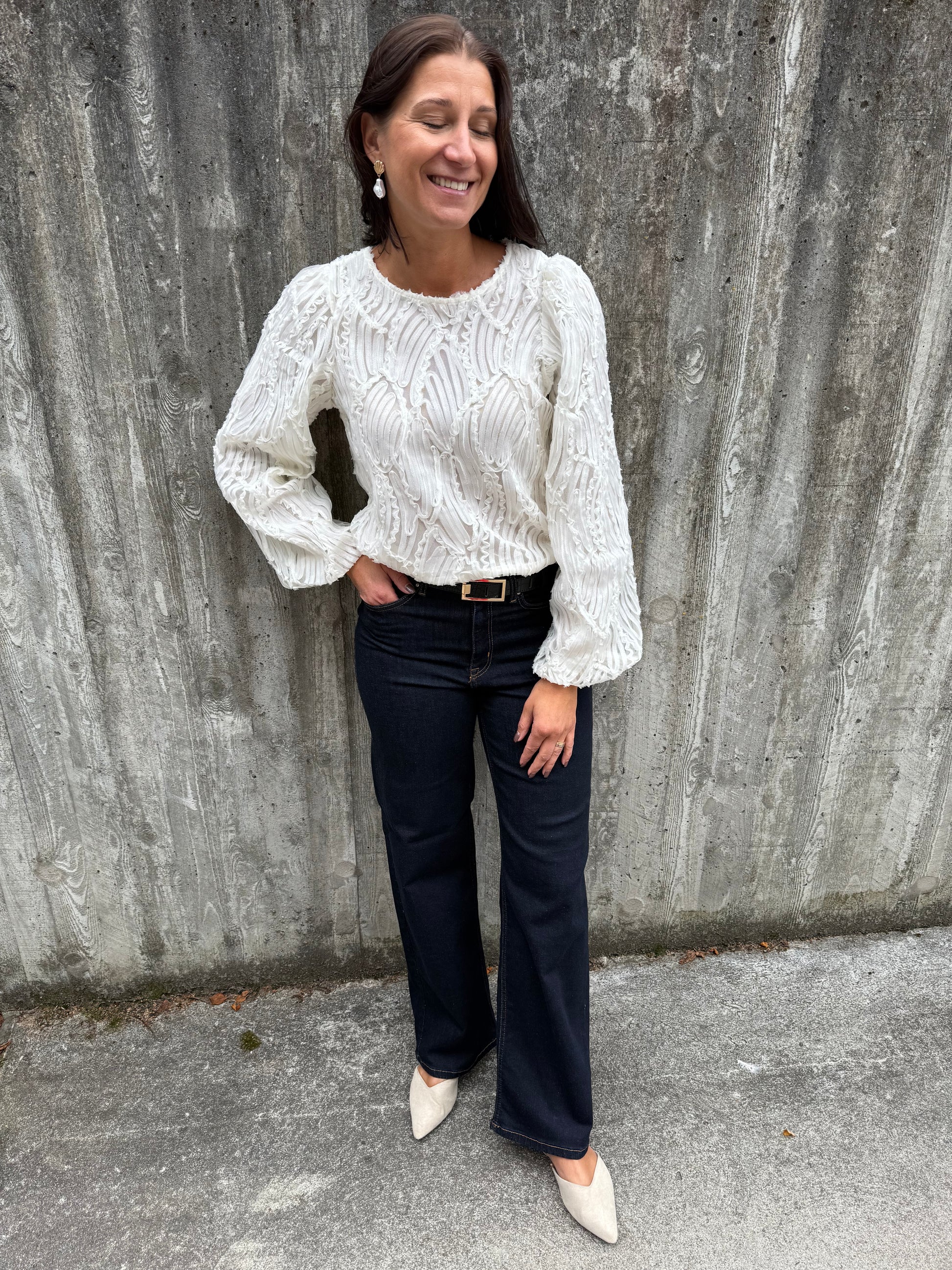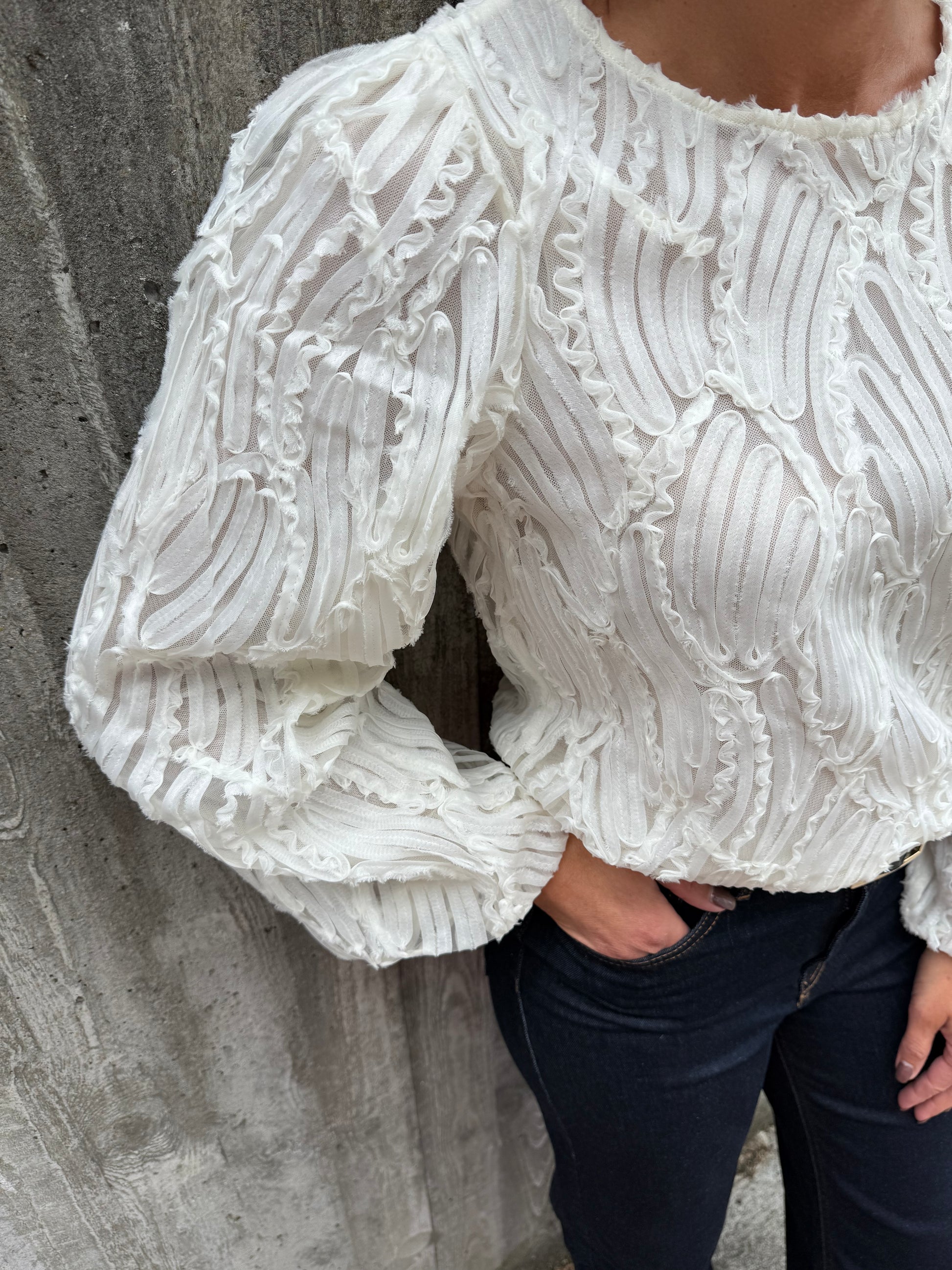 OBJLUCIE L/S RE O-NECK TOP WHITE SAND