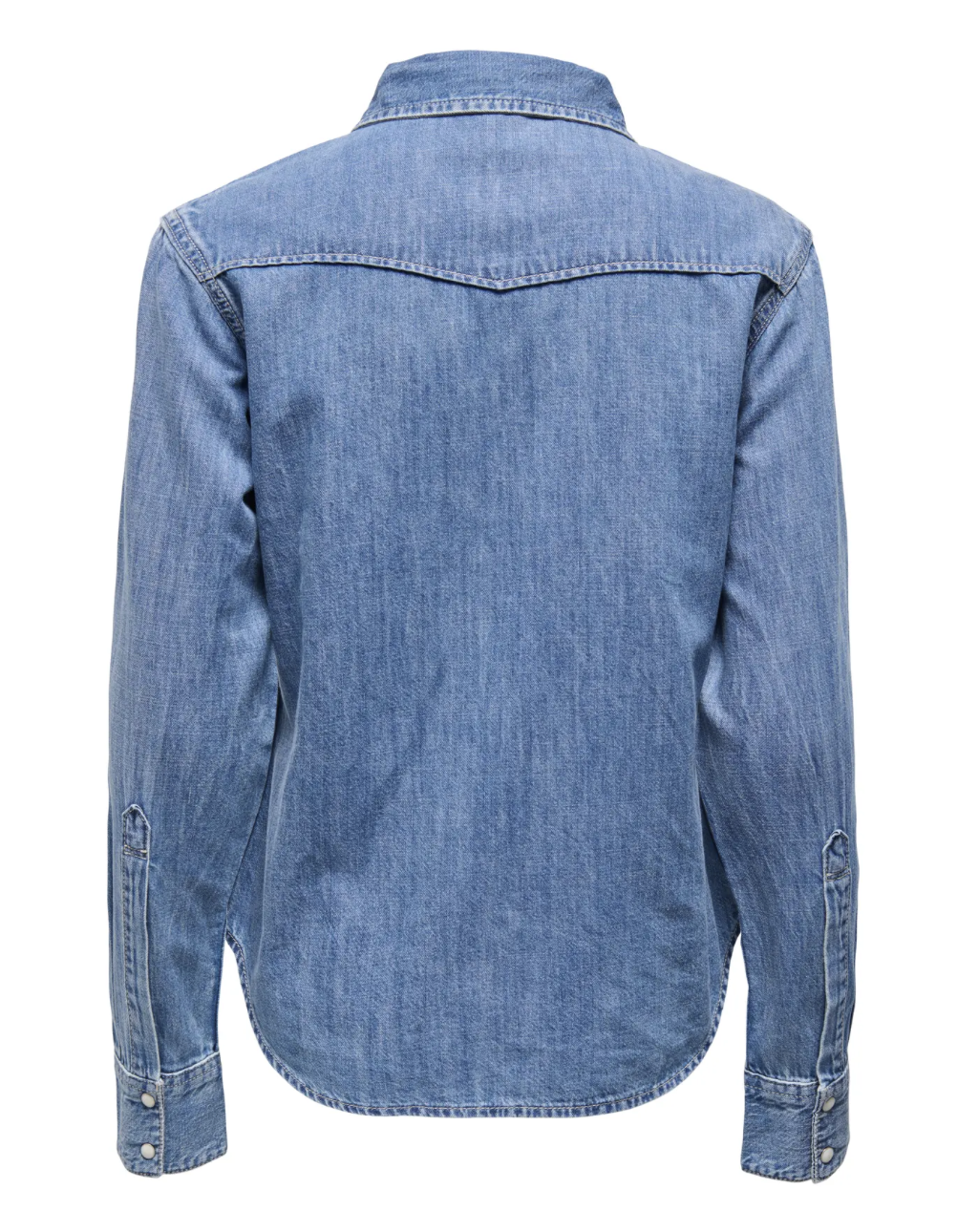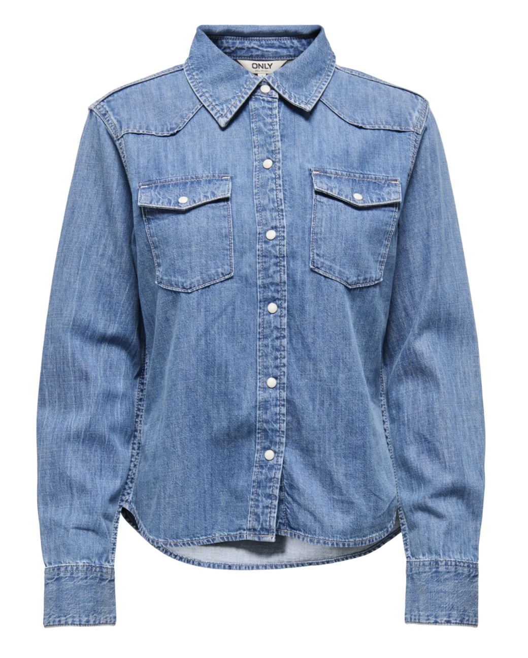 Denimskjorta i mediumblue tvätt med pärlemor knappar.