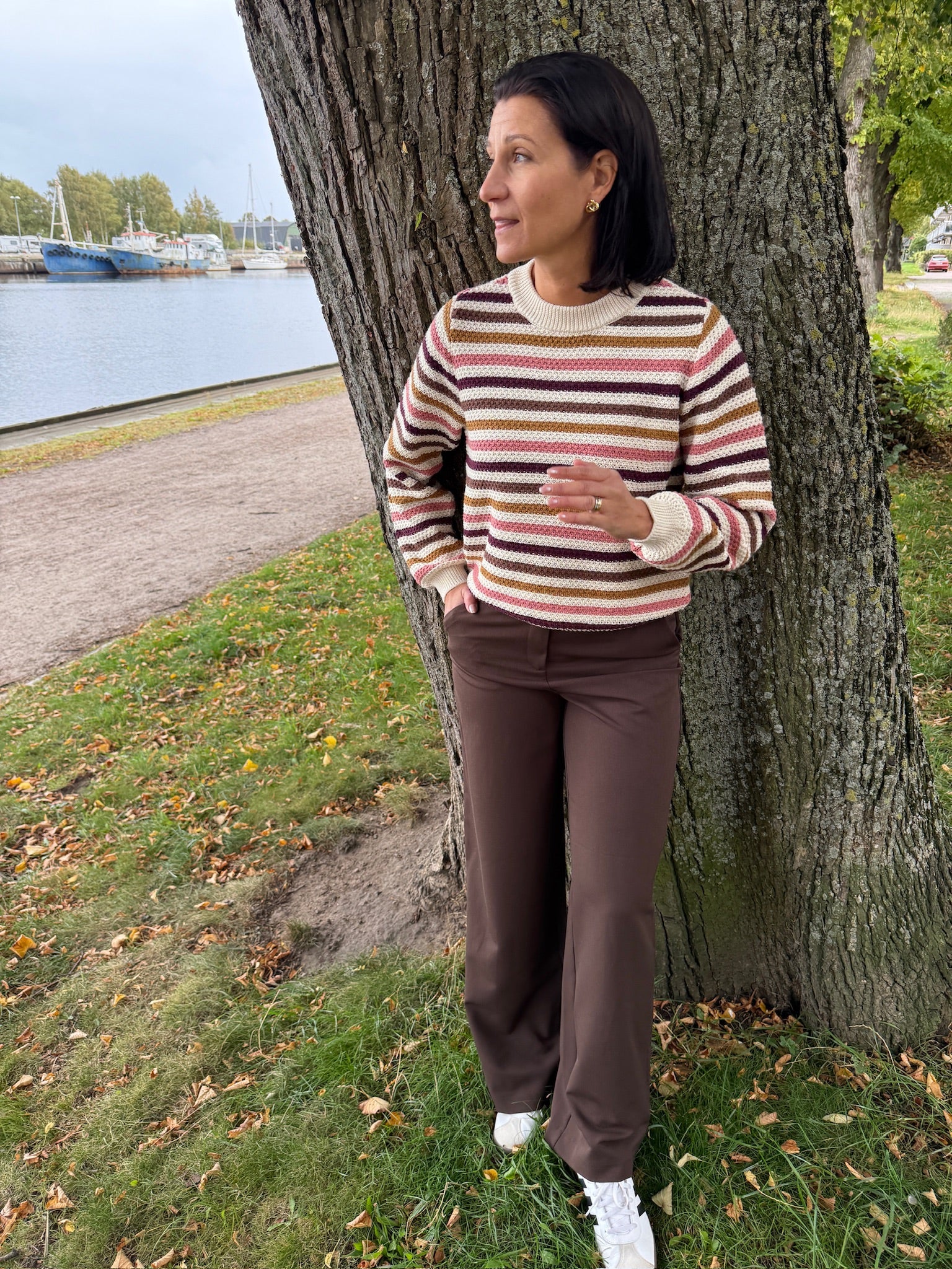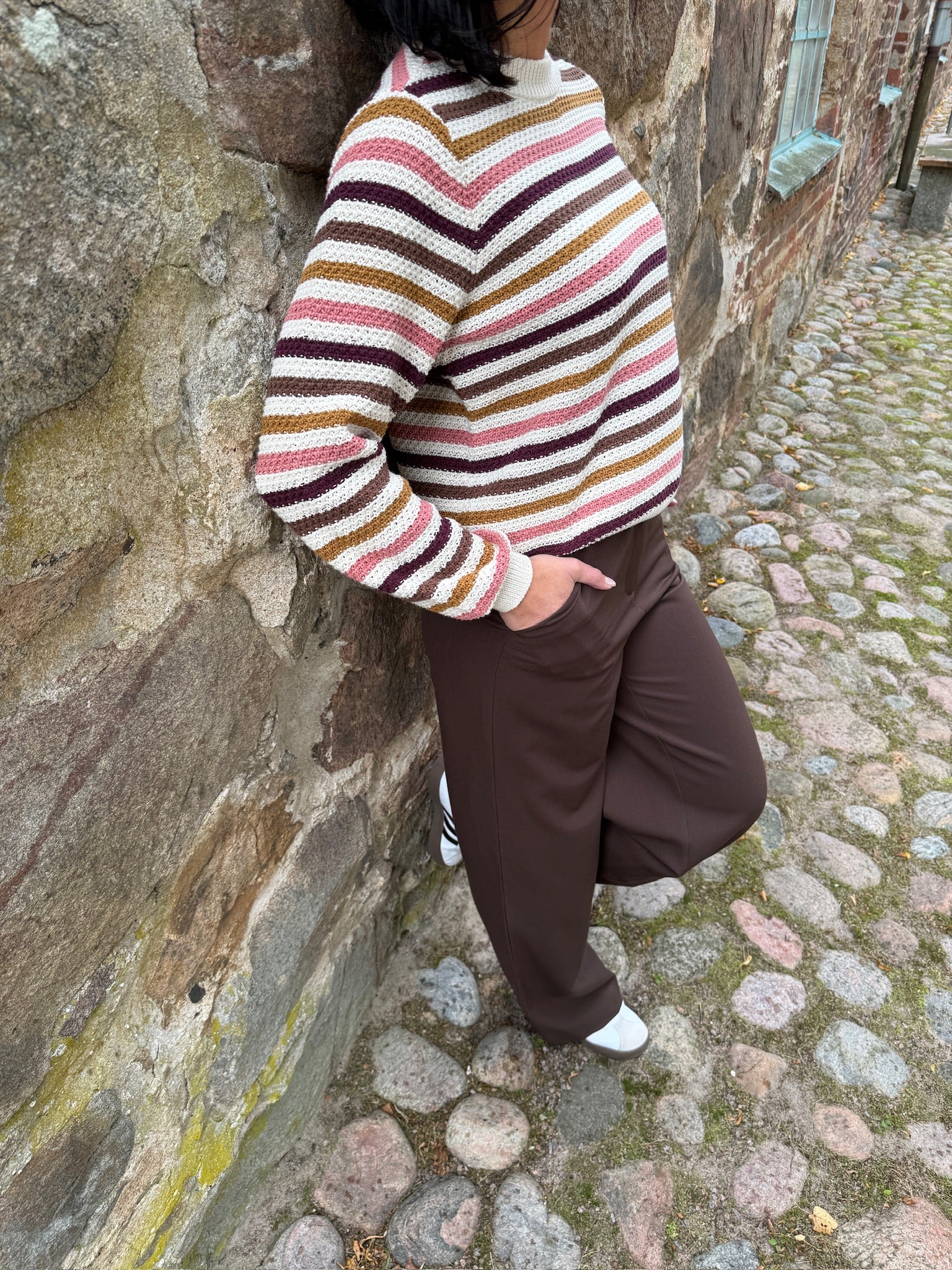 Strickad randig tröja med struktur.